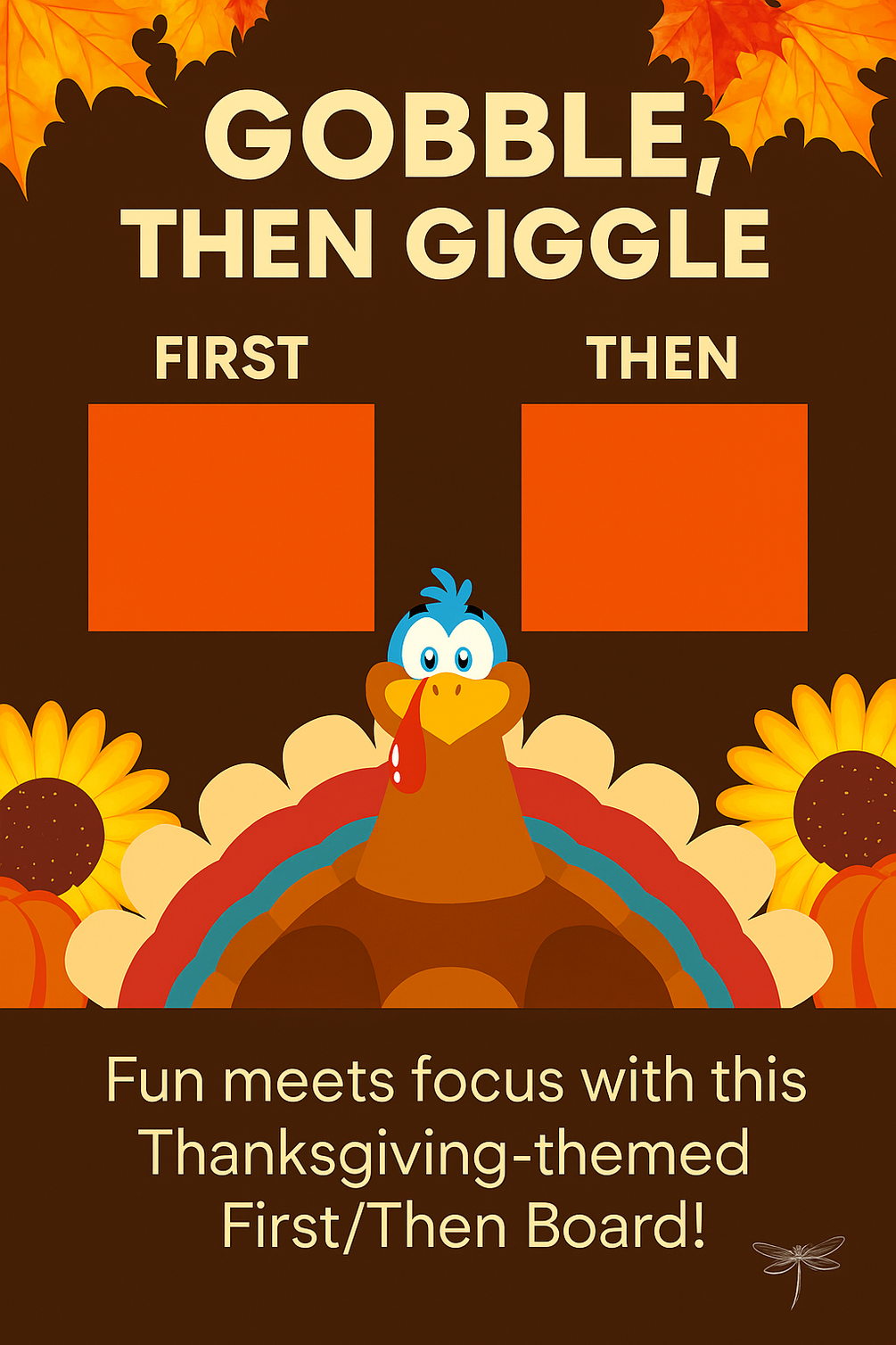 Keep routines on track and smiles in season with this Thanksgiving-themed First/Then Board! Perfect for parents and RBTs, Gobble, Then Giggle turns task time into turkey-time fun while teaching structure, patience, and follow-through. 🦃✨